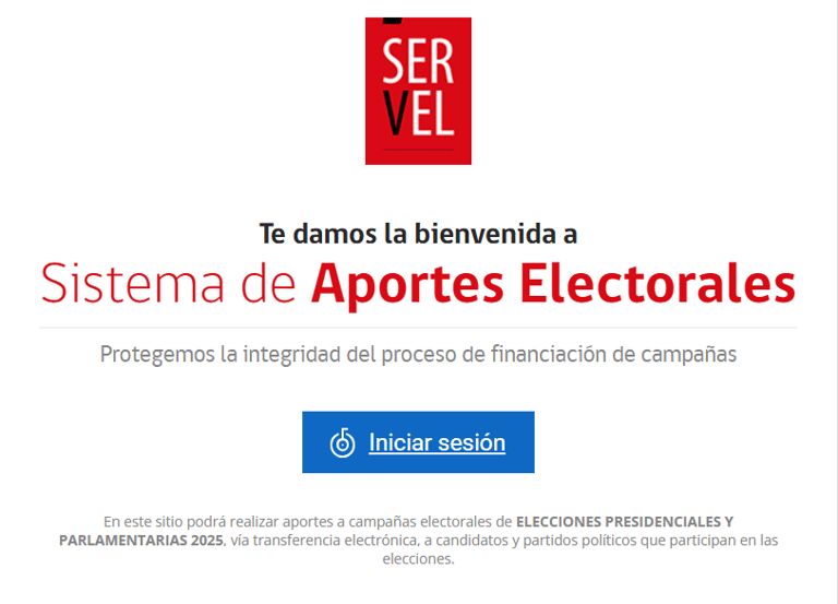 Haz clic en Servel - Aportes o en la imagen del Sistema de Aportes Electorales.